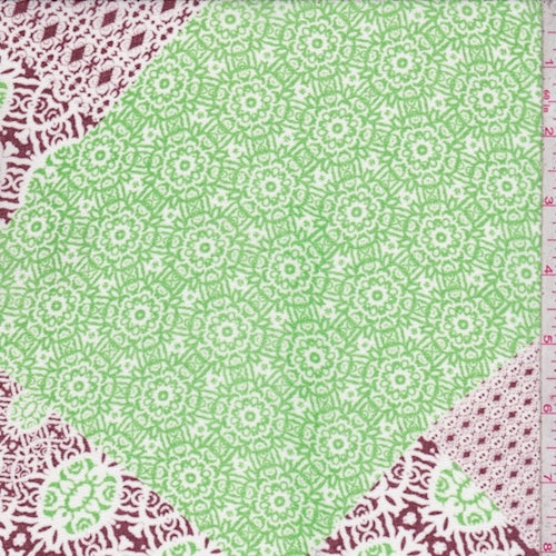 Grass Green/Maroon Moroccan Patch Georgette Fabric