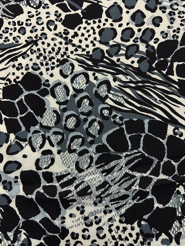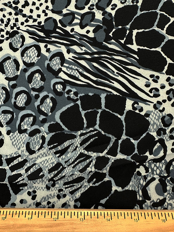 -Gray & Black Multi Animal Print Poly Georgette Fabric