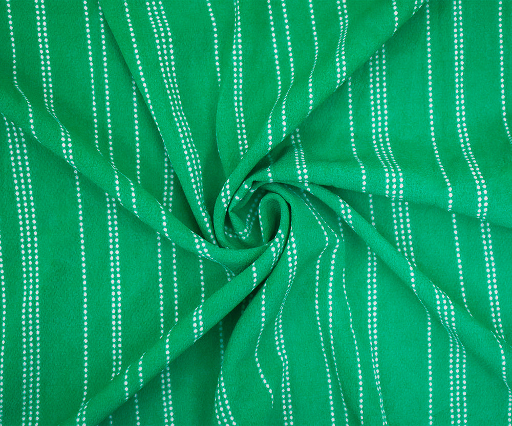 Green-White Dotted Stripe Printed Crepe Georgette Woven Fabric