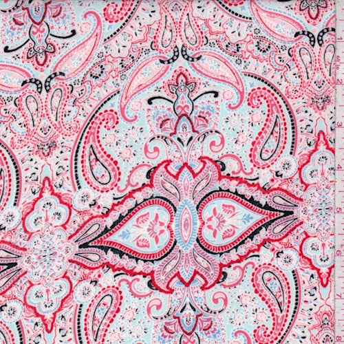 Neon Pink/Spa Blue Stylized Paisley Crepe Georgette Fabric