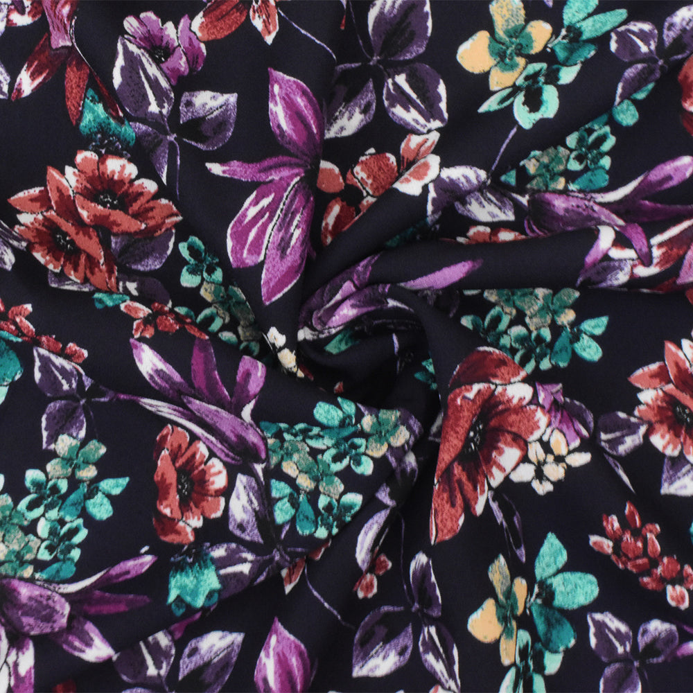 Purple-Red-Multi Floral Printed Poly Georgette Woven Fabric