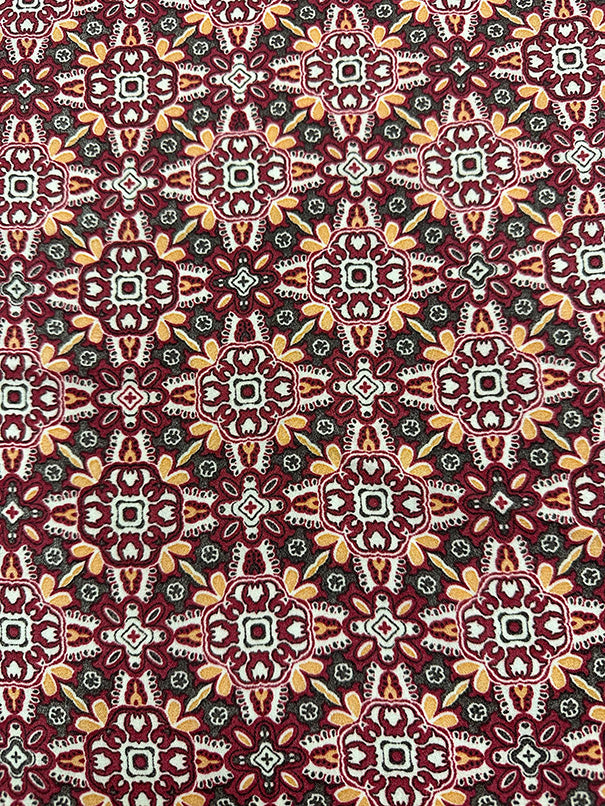 -Red, Brown, Gold, & White Multi Print Poly Georgette Fabric