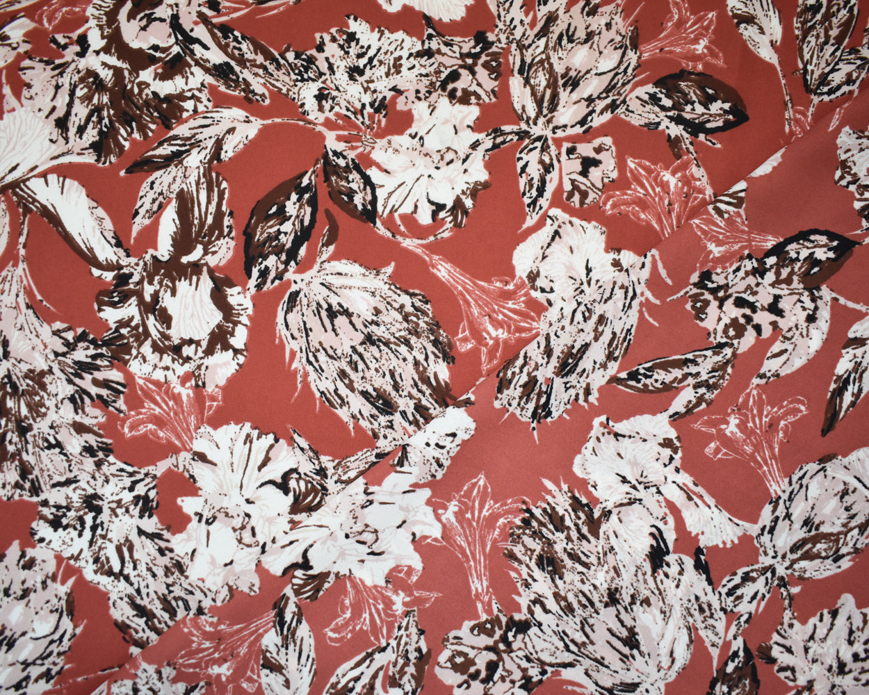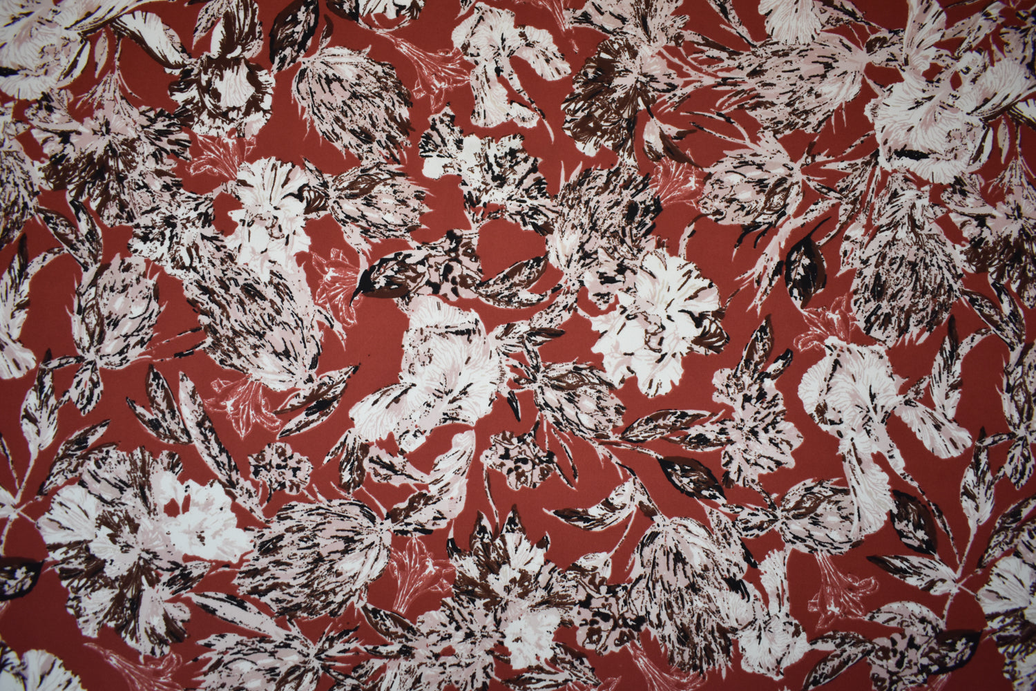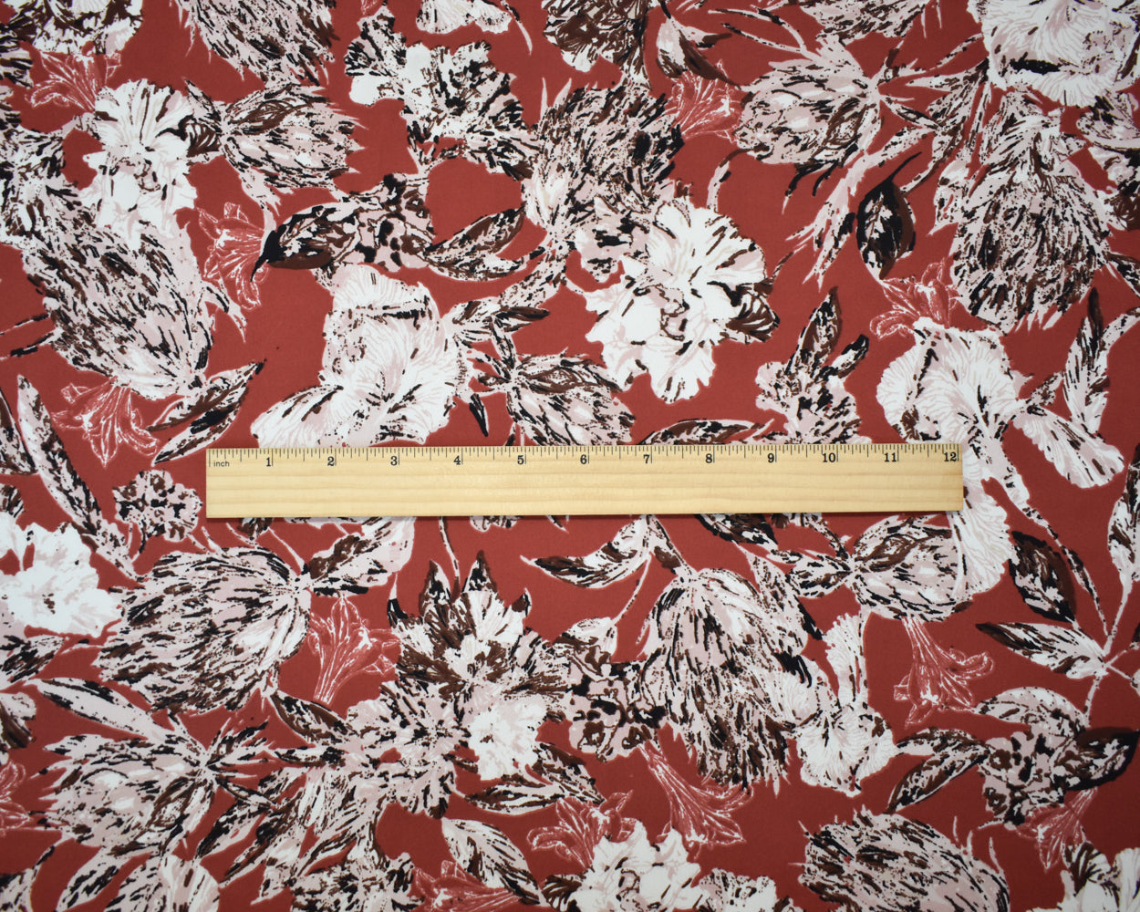 Red-Pink-Multi Poly Abstract Floral Printed Georgette Woven Fabric