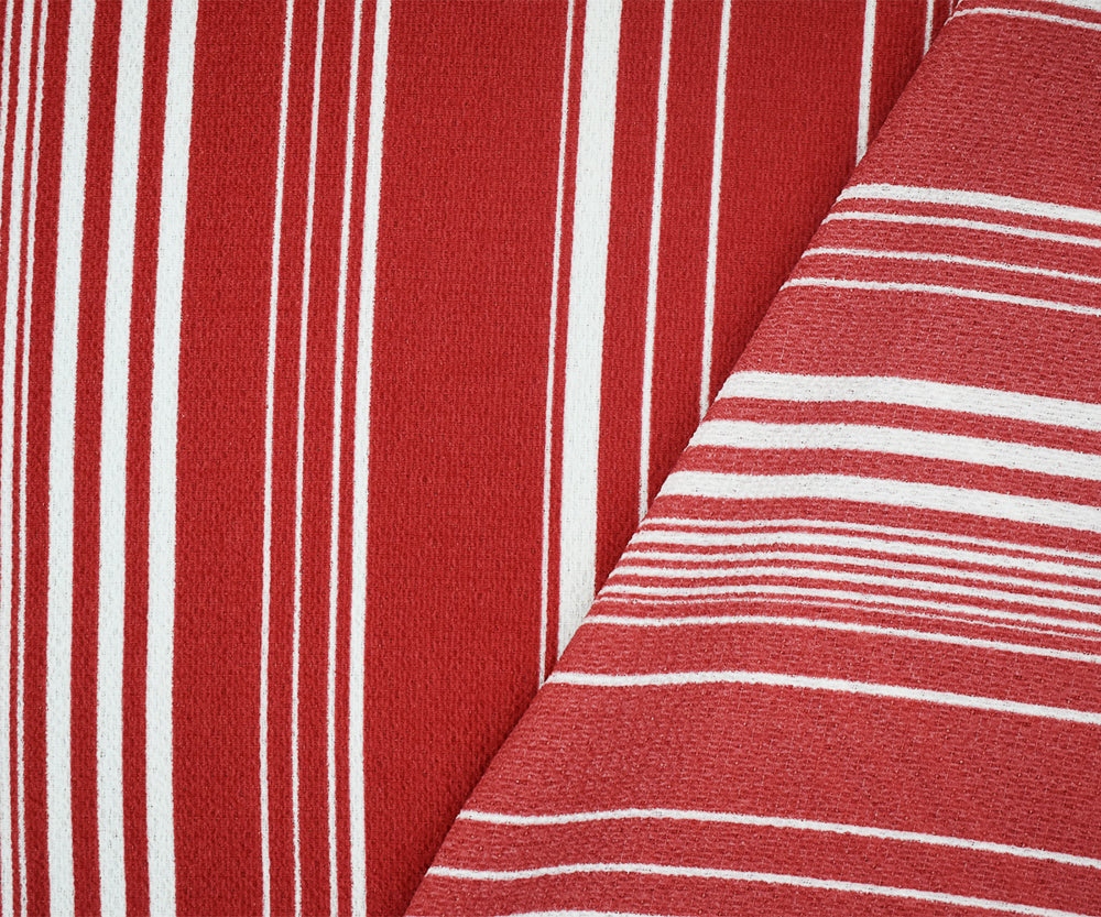 Red-White Stripe Printed Poly Crepe Georgette Woven Fabric