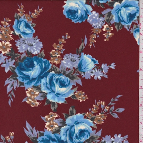 Rust/Aqua Rose Spray Crepe Georgette Fabric