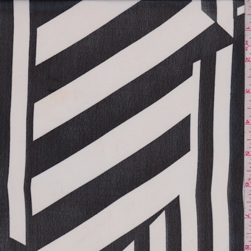 White/Black Stripe Block Georgette Fabric