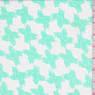 White/Sea Green Abstract Houndstooth Georgette Fabric