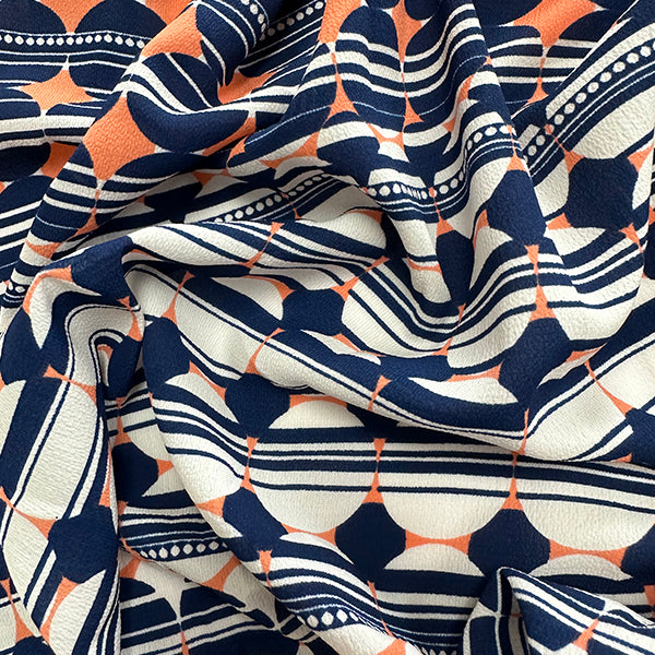 Deep Blue-Orange-Multi Aztec Printed Momie Crepe Georgette Woven Fabric