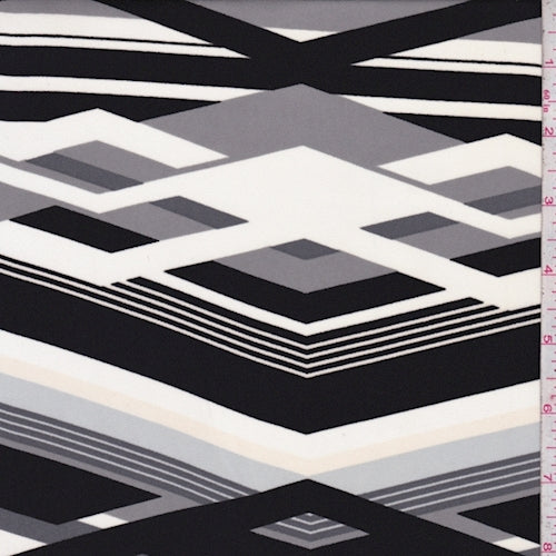 Black/Stone/Ivory Abstract Stripe Crepe Georgette Fabric