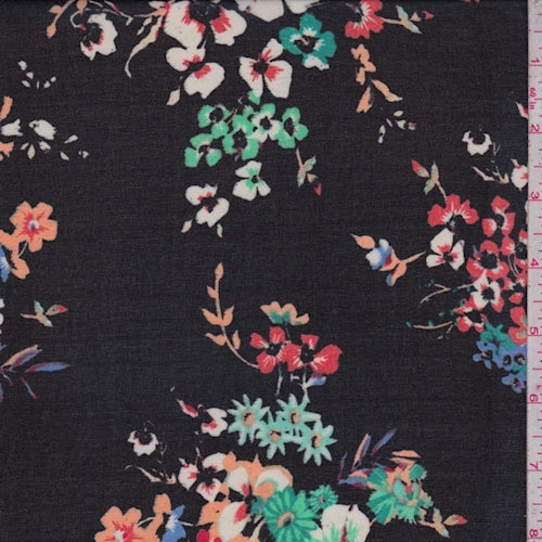 Pink/Teal/Lilac Floral Crepe Georgette Fabric