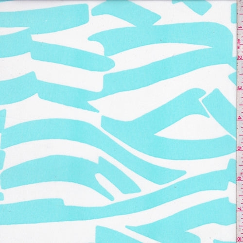 White/Sea Green Abstract Houndstooth Georgette Fabric