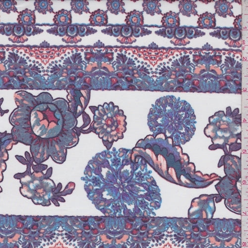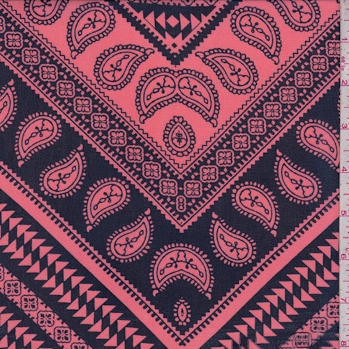 Melon Pink/Navy Paisley Chevron Georgette Fabric
