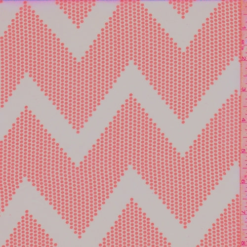 Peach/Neon Pink Dotted Chevron Georgette Fabric