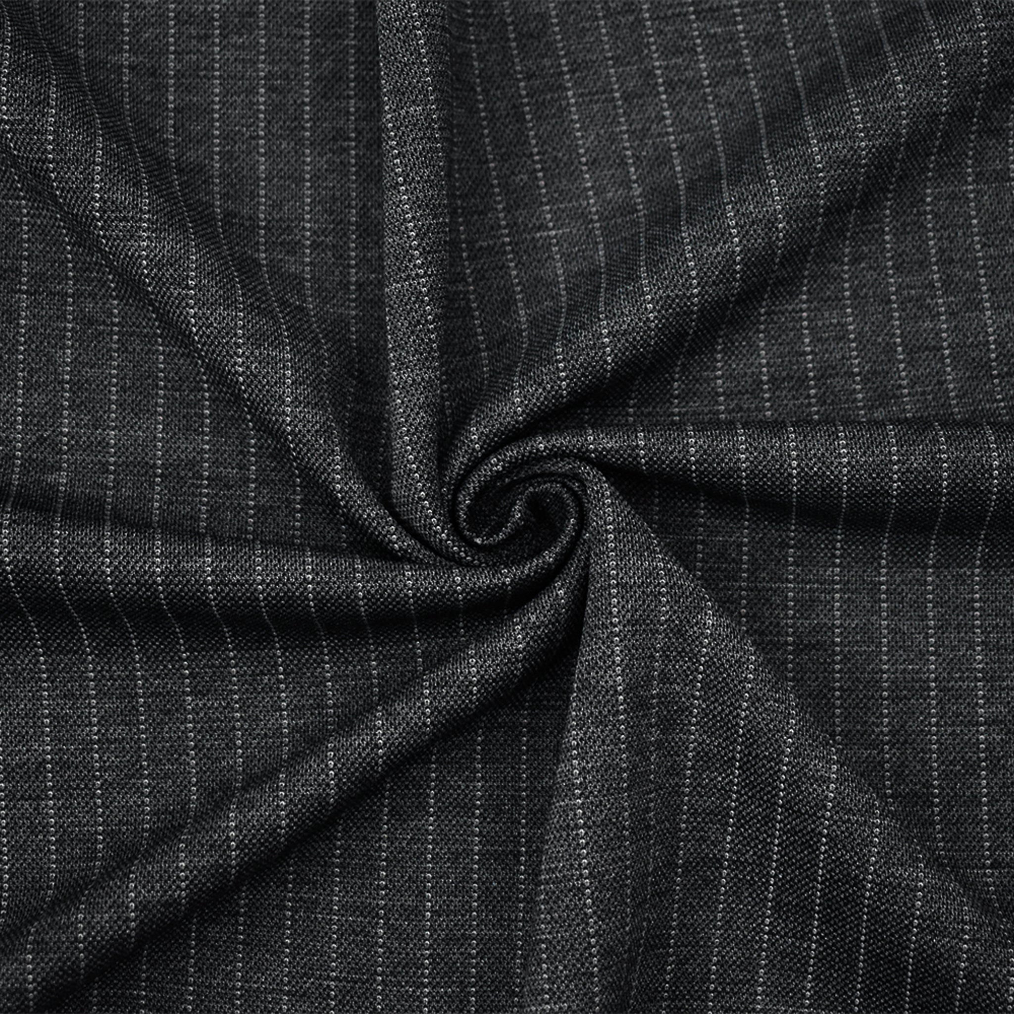 Gray-Black Poly-Wool Stripe Texture Stretch Knit Jacketing Fabric