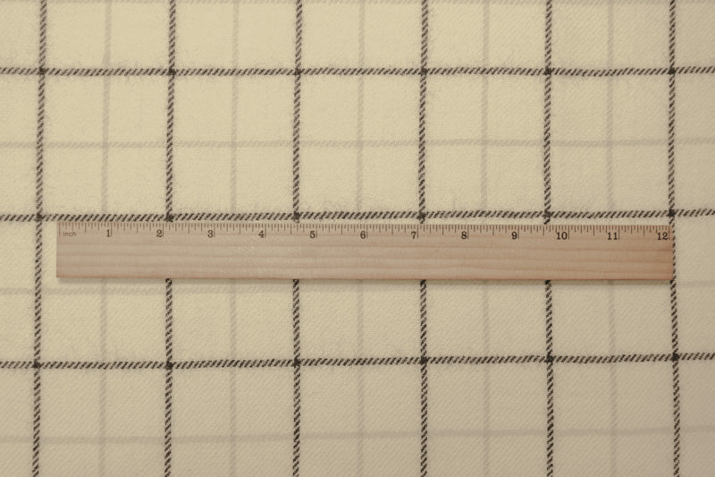 Ivory-Multi Wool-Poly Check-Plaid Twill Woven Jacketing Fabric