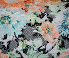 Black-Orange-Multi Nylon Floral Printed Lace Mesh Knit Fabric