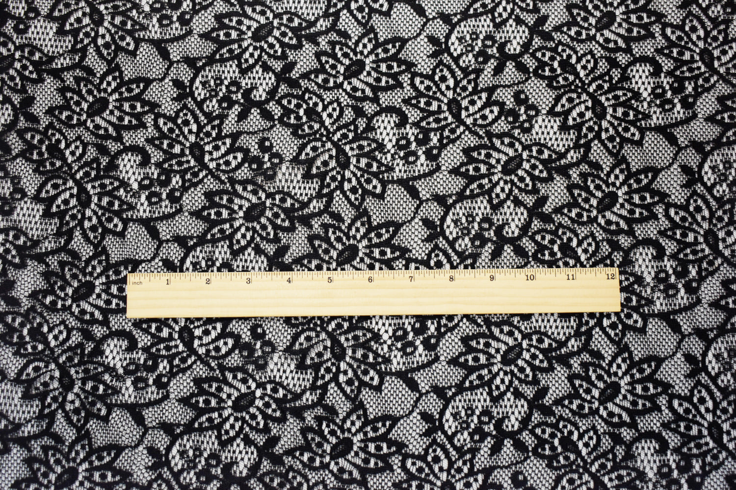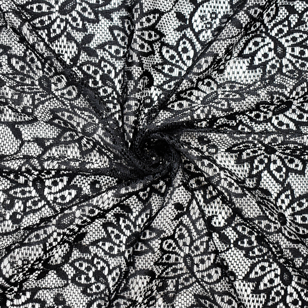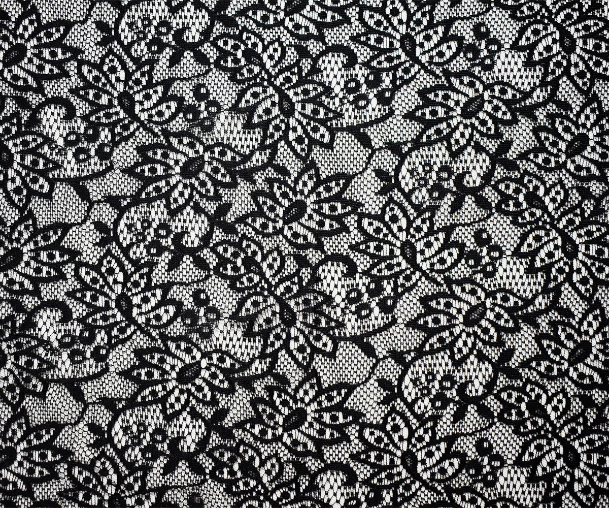 Black Poly Leaves Lace Knit Fabric