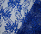 Blue-Silver Poly Nylon Floral Lace Knit Fabric