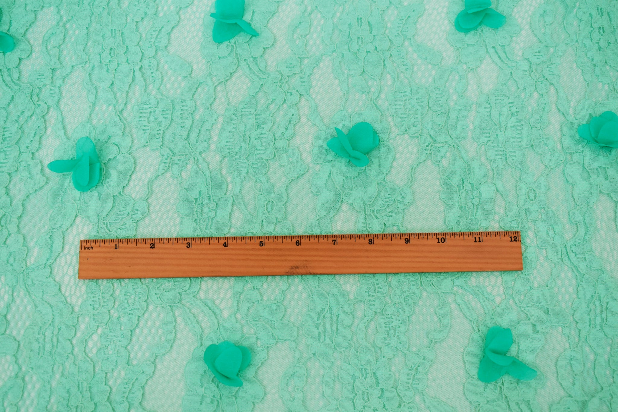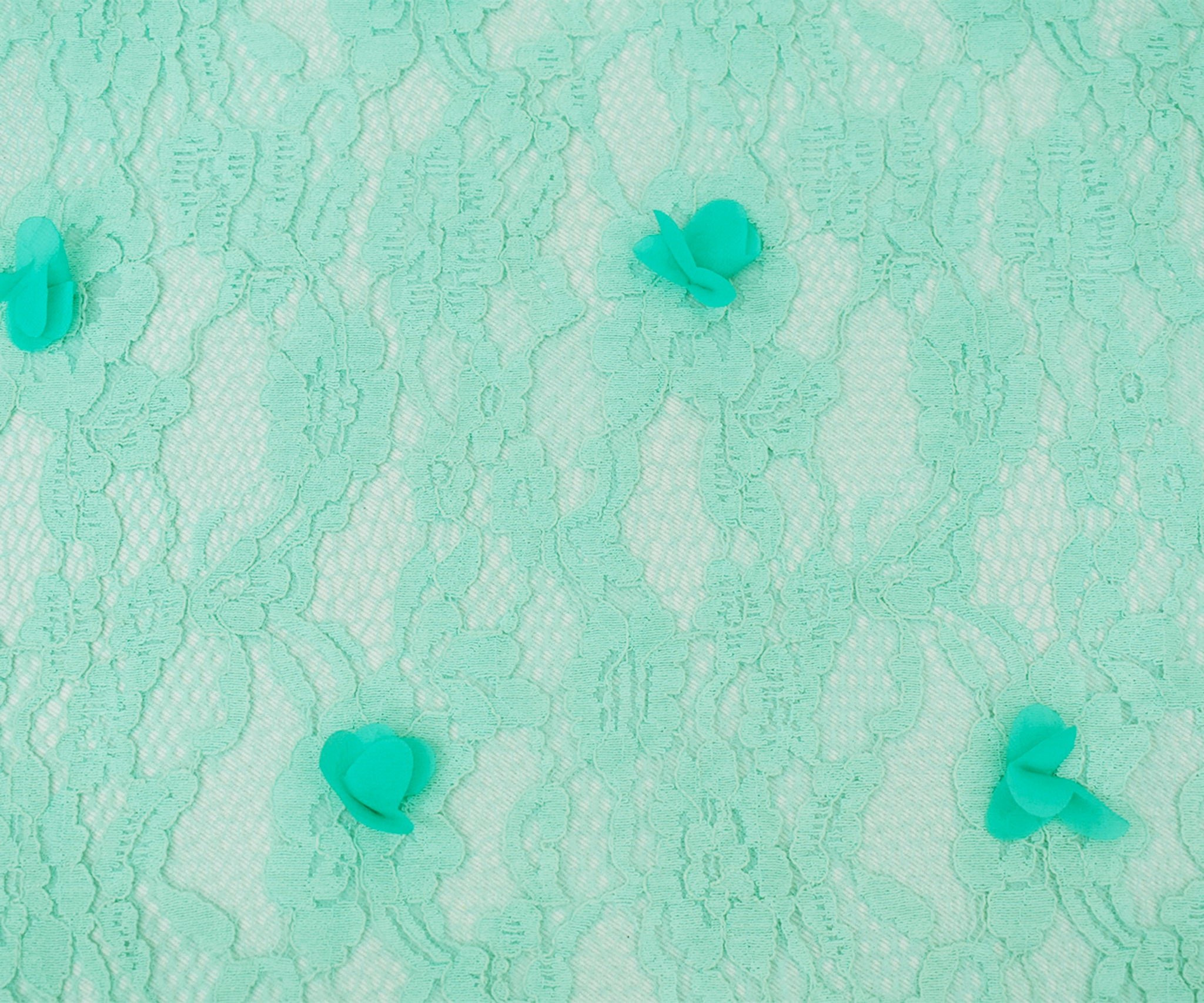 Pastel Teal Cotton-Poly Floral Applique Lace Mesh Knit Fabric