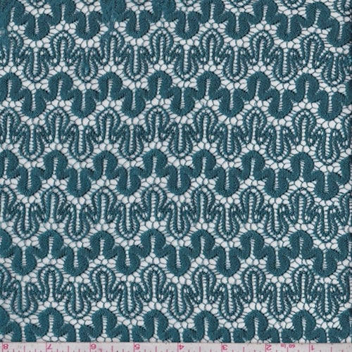 -Crocheted nylon lace with a squiggle design and metallic silver thread accents
