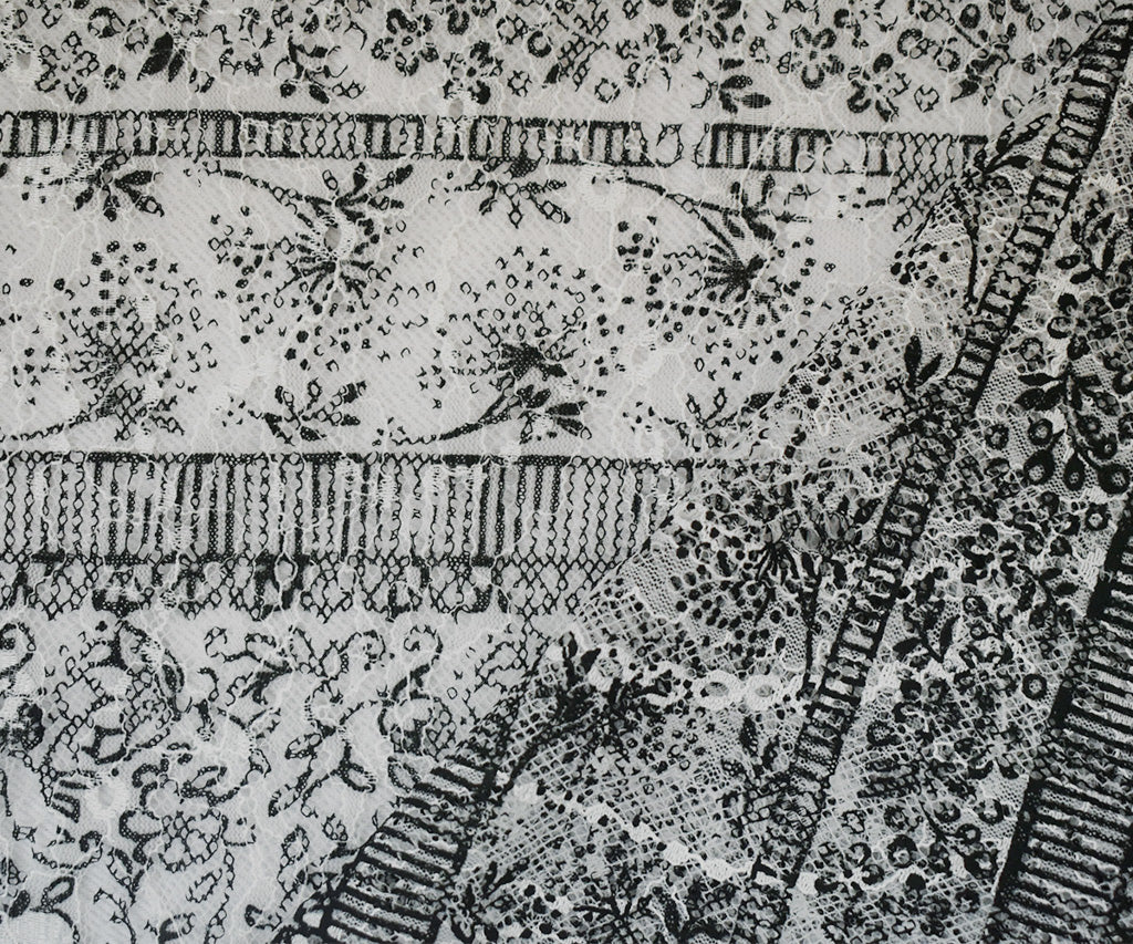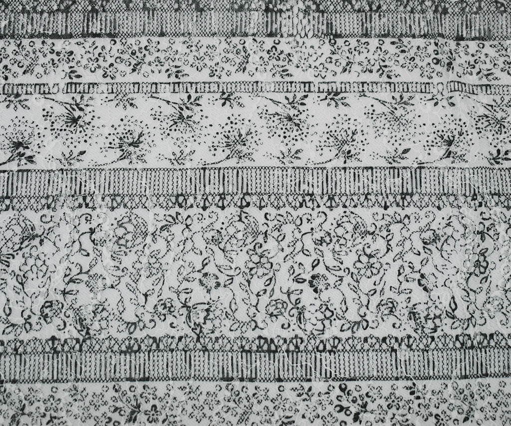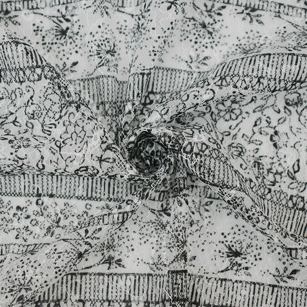 White-Black Nylon RAYON Floral Stripe Printed Lace Mesh Knit Fabric