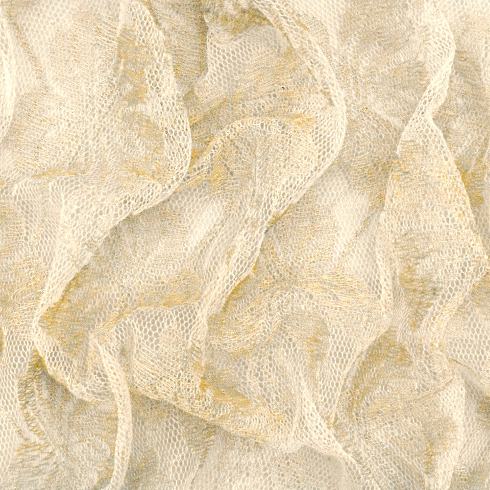 White-Gold Sparkle Floral Metallic Lace Fabric