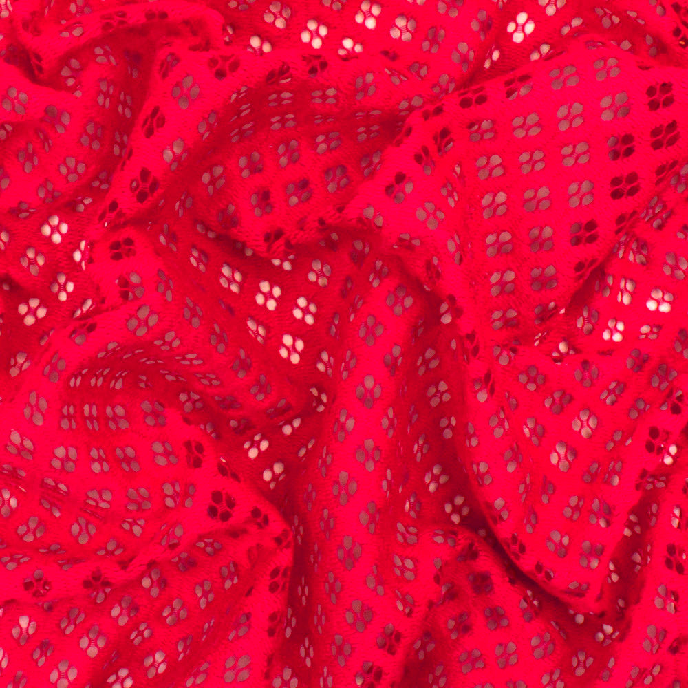 Lipstick Red Diamond Crochet Lace Knit Fabric