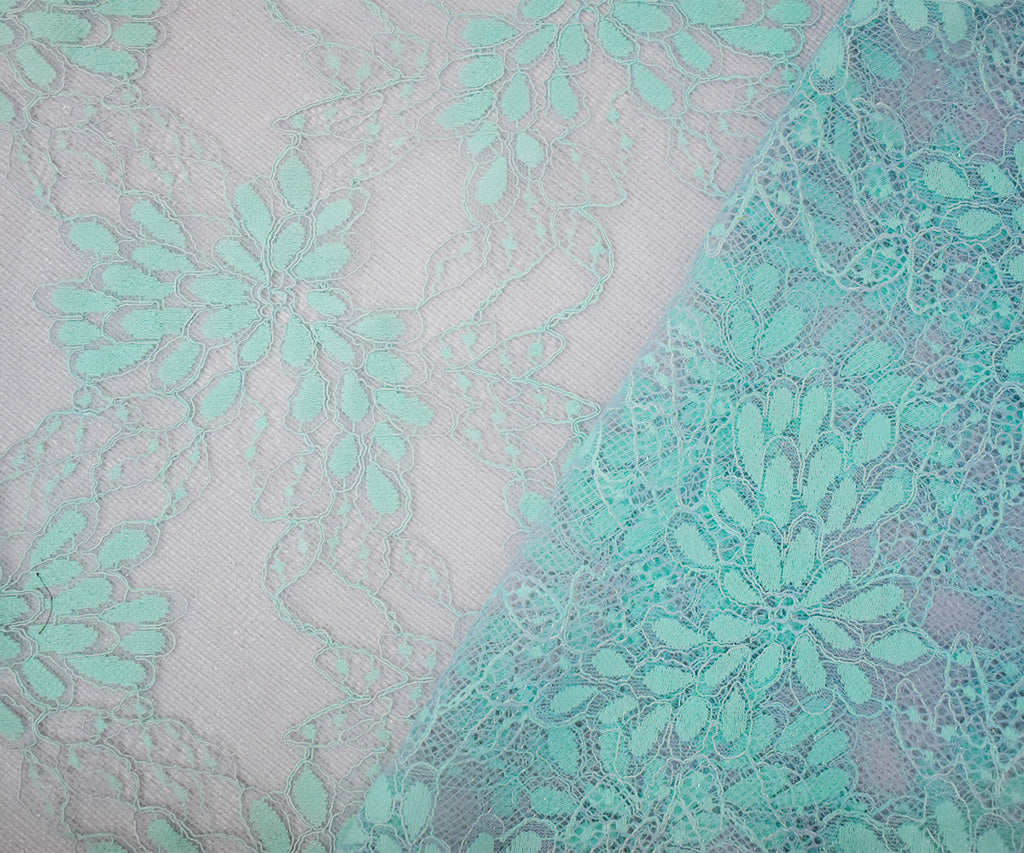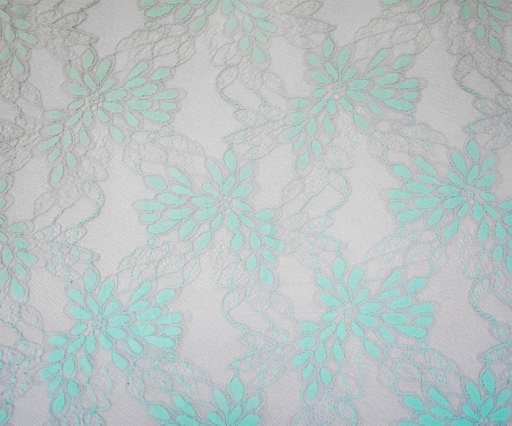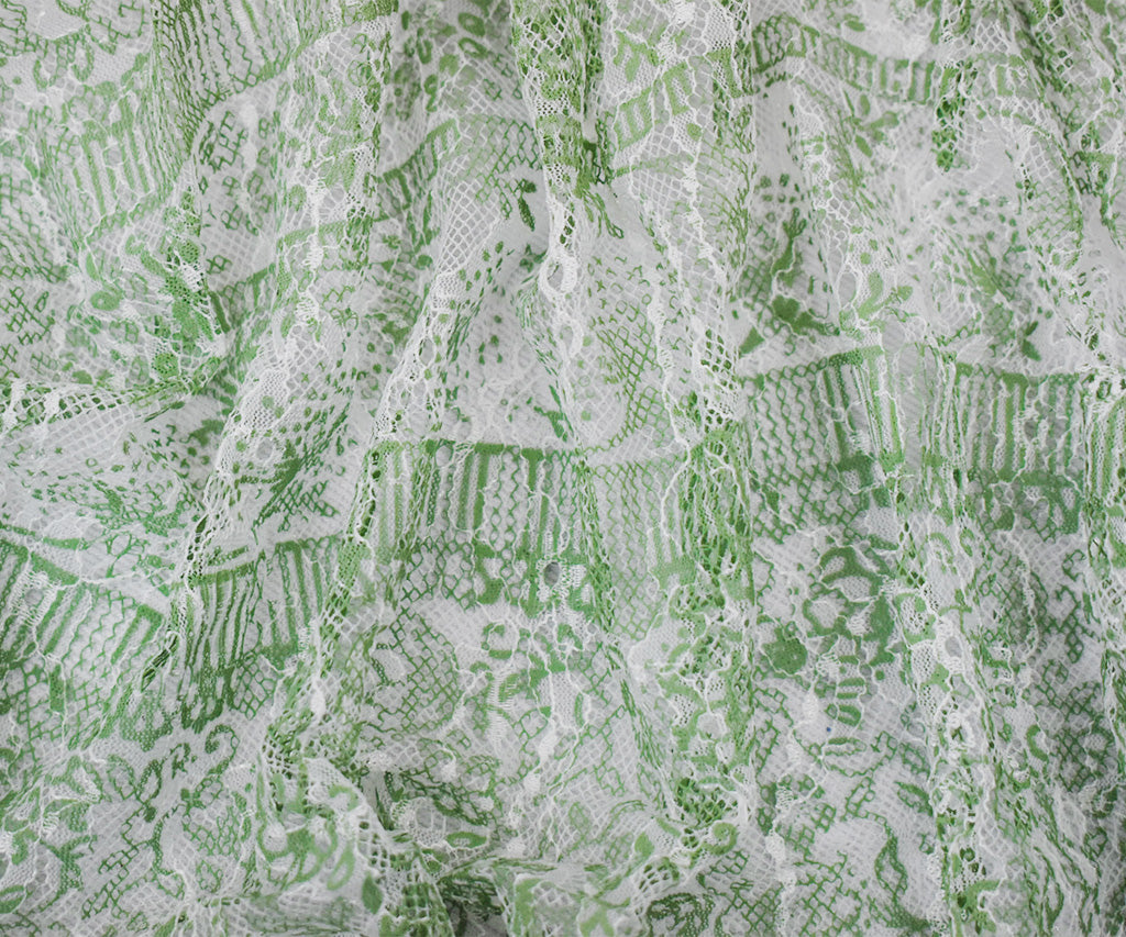 White-Green Nylon Floral Printed Lace Mesh Knit Fabric