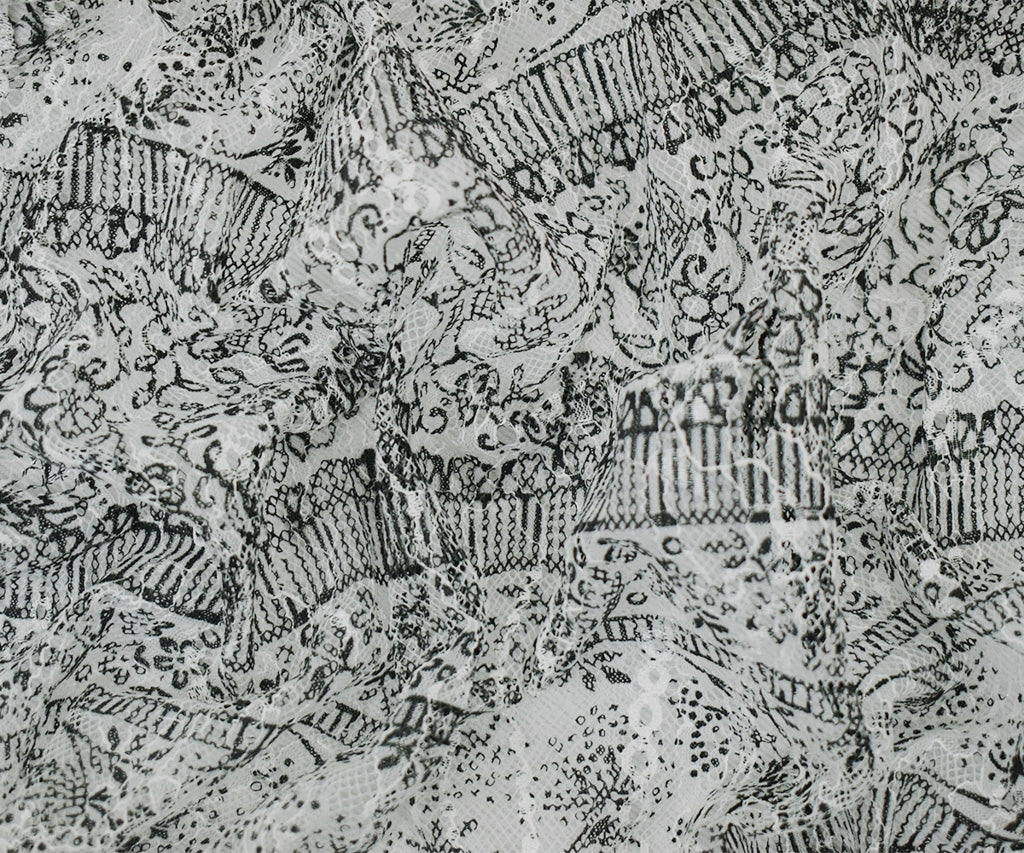 White-Black Nylon Floral Vine Printed Lace Mesh Knit Fabric