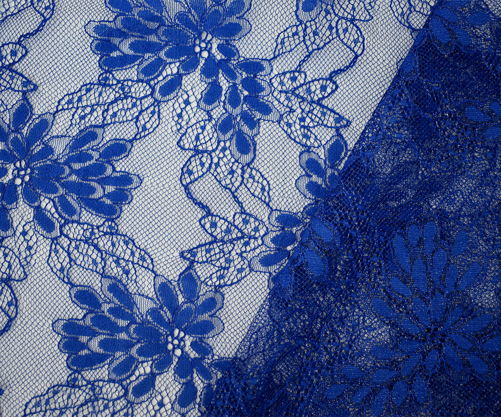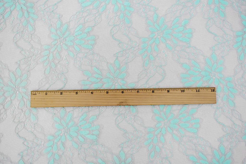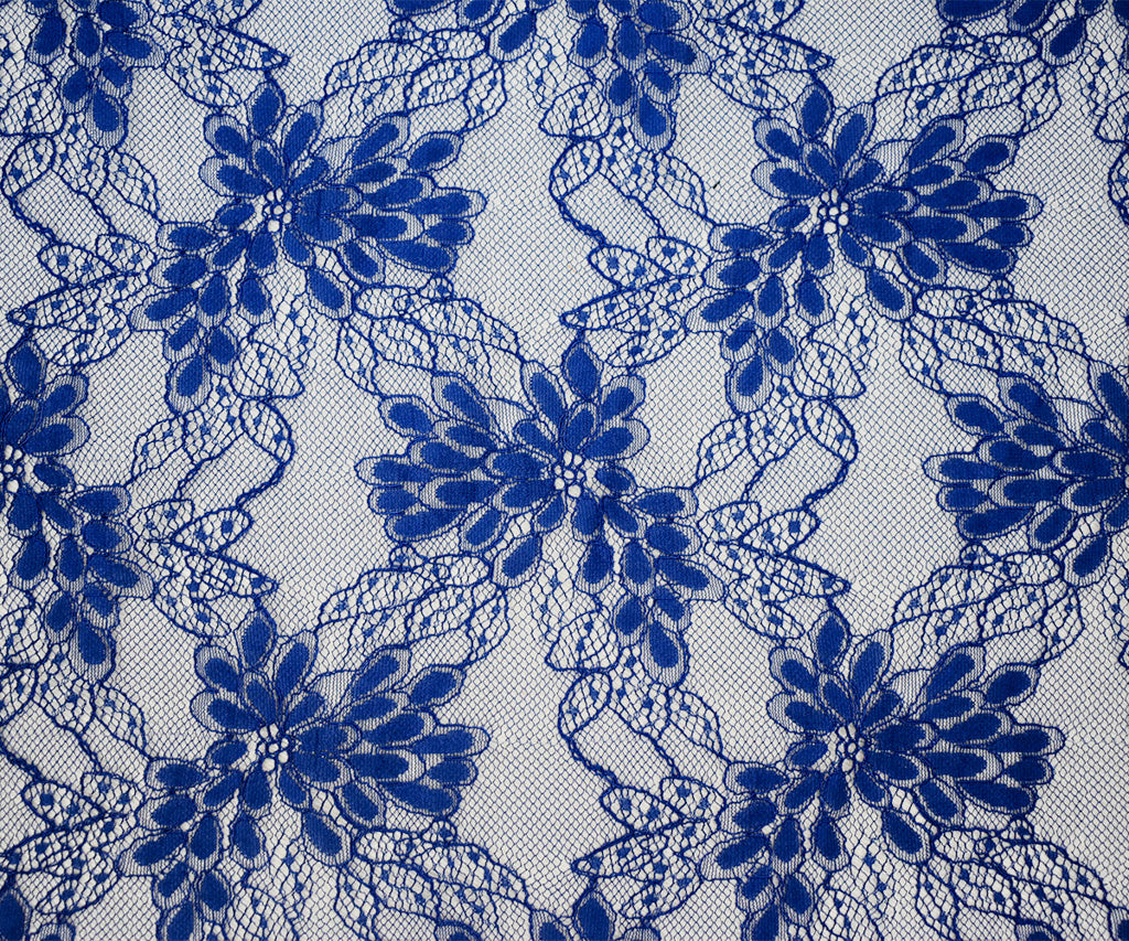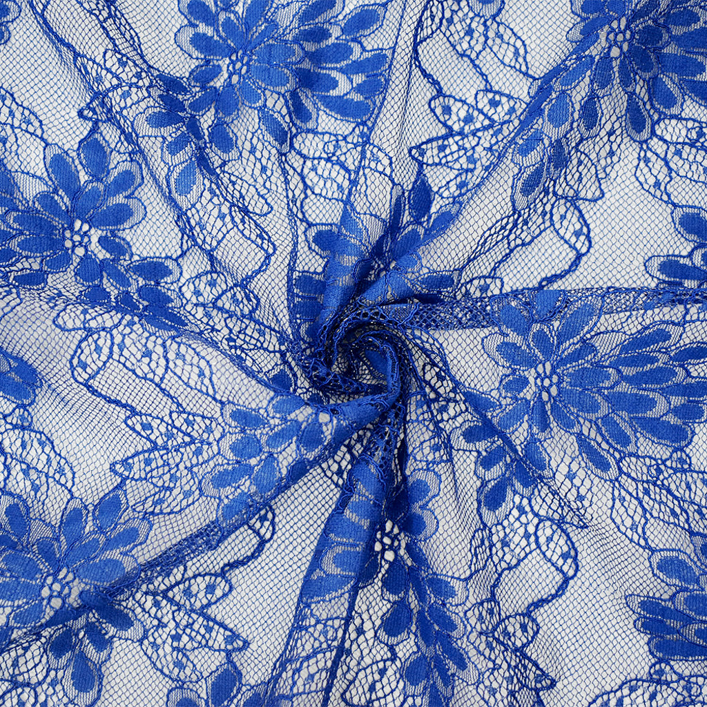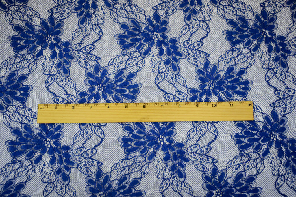 Blue-Silver Poly Nylon Floral Lace Knit Fabric