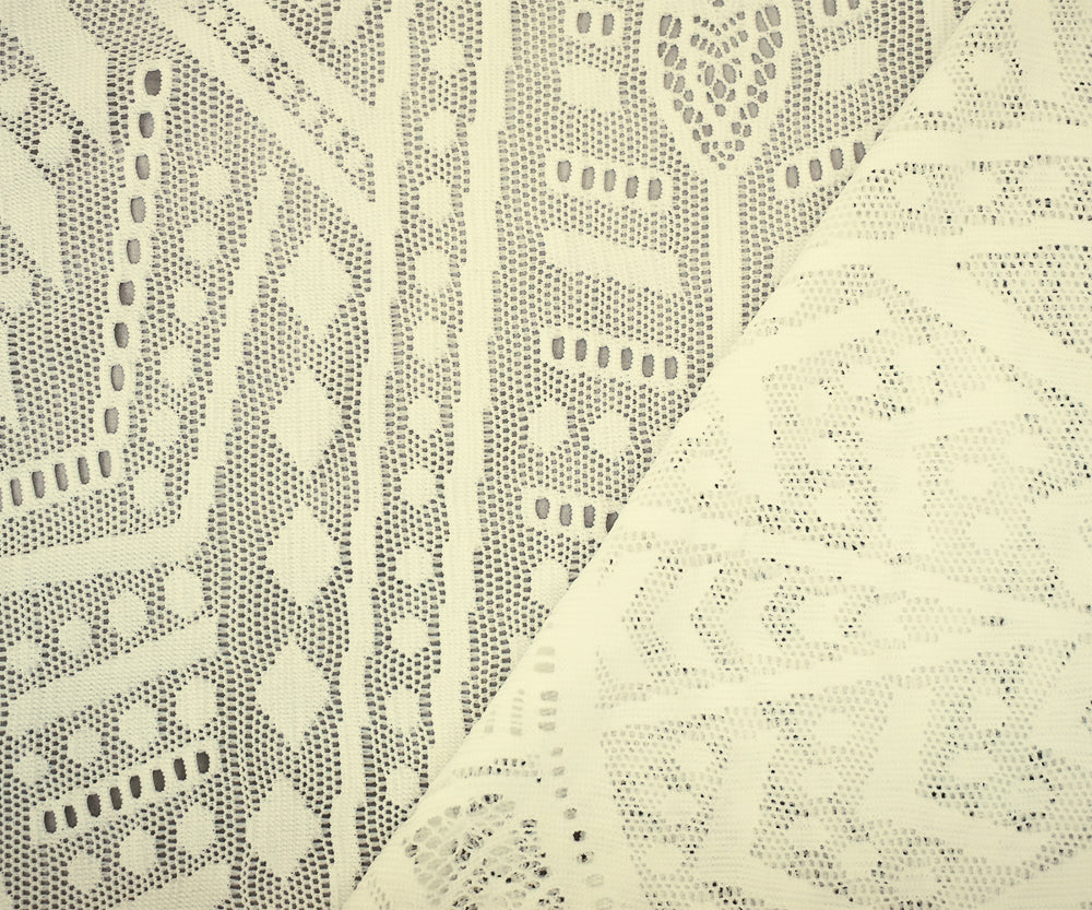Ivory Nylon Spandex Blend Fancy Geometric Lace-Like Crochet Knit Fabric