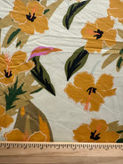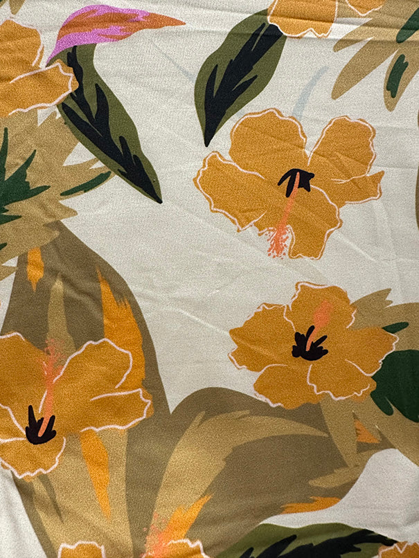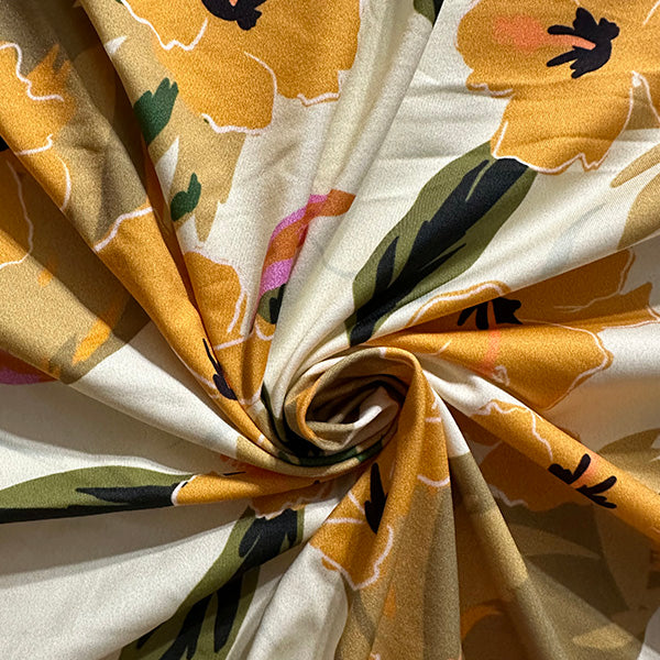 -Gold, Orange, Green, Olive, Black, & Pink Floral Print on Buttercream ITY Jersey Knit Fabric