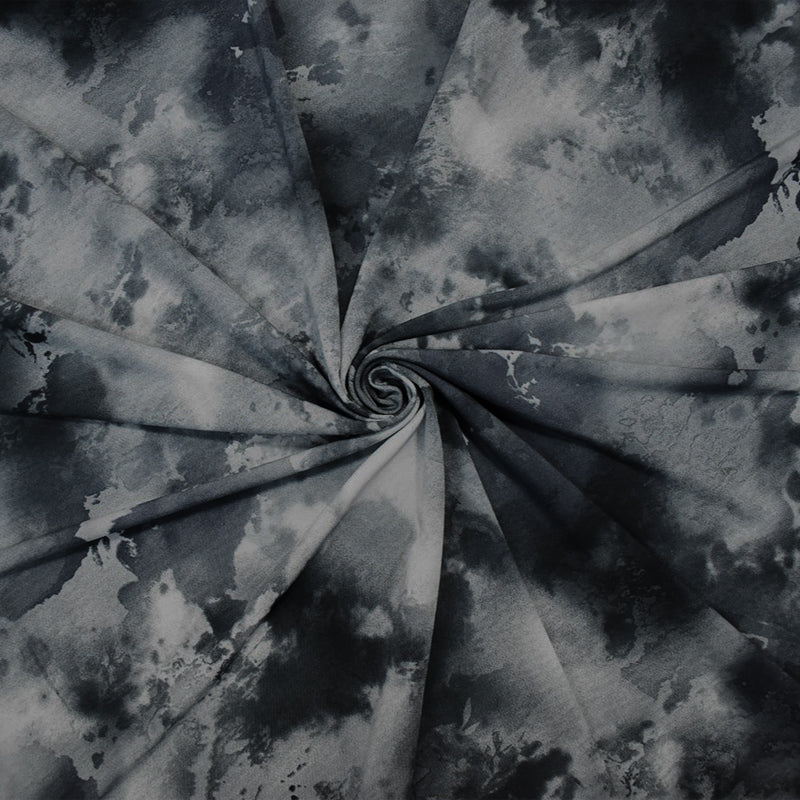 Gray Tie Dye Printed Stretch ITY Jersey Knit Fabric