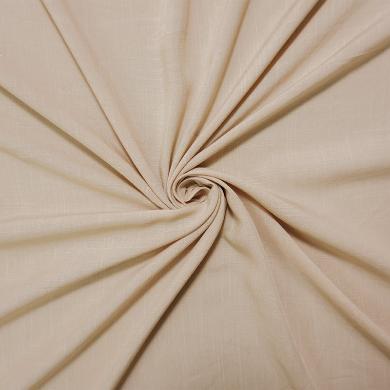 Beige Rayon Solid Cross Hatch Linen-Look Challis Woven Fabric