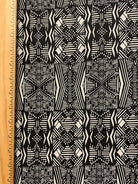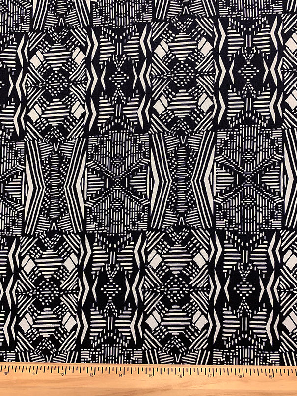-Black and White Novelty Print Stripe Rayon Challis Fabric