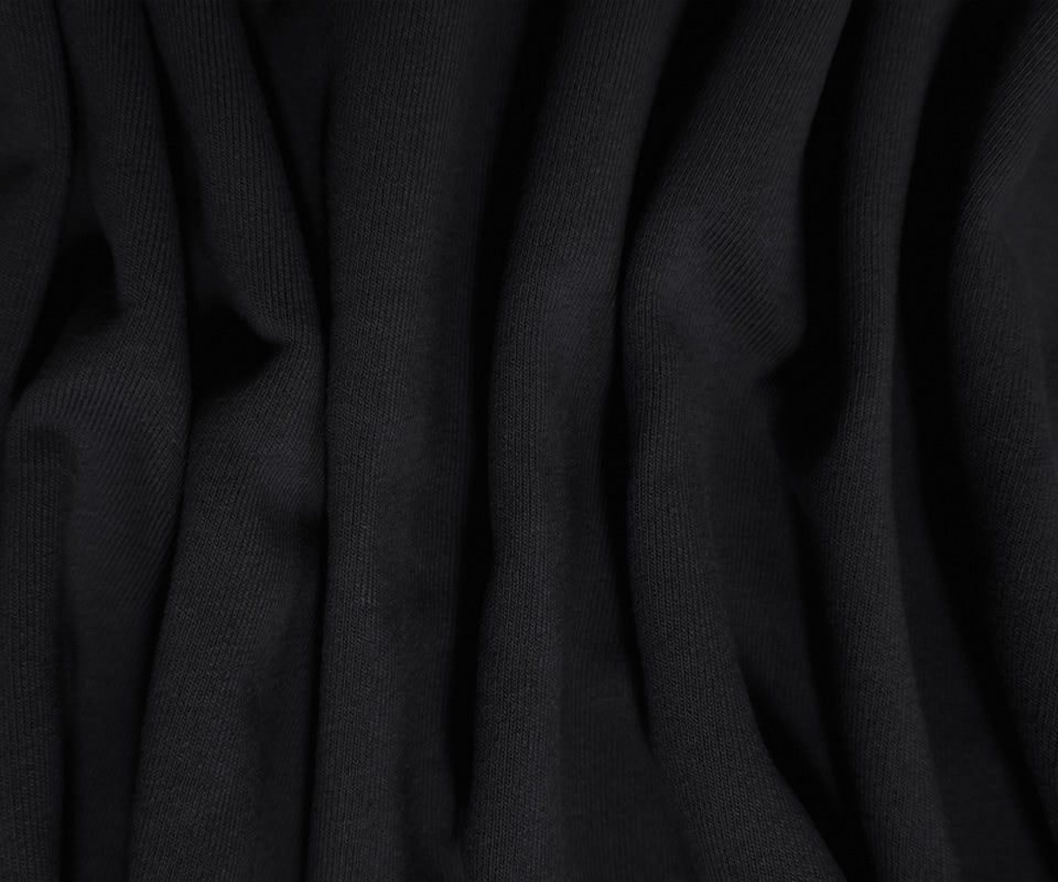 -This cotton-poly fleece knit offers a solid black coloration with a soft, brushed texture.