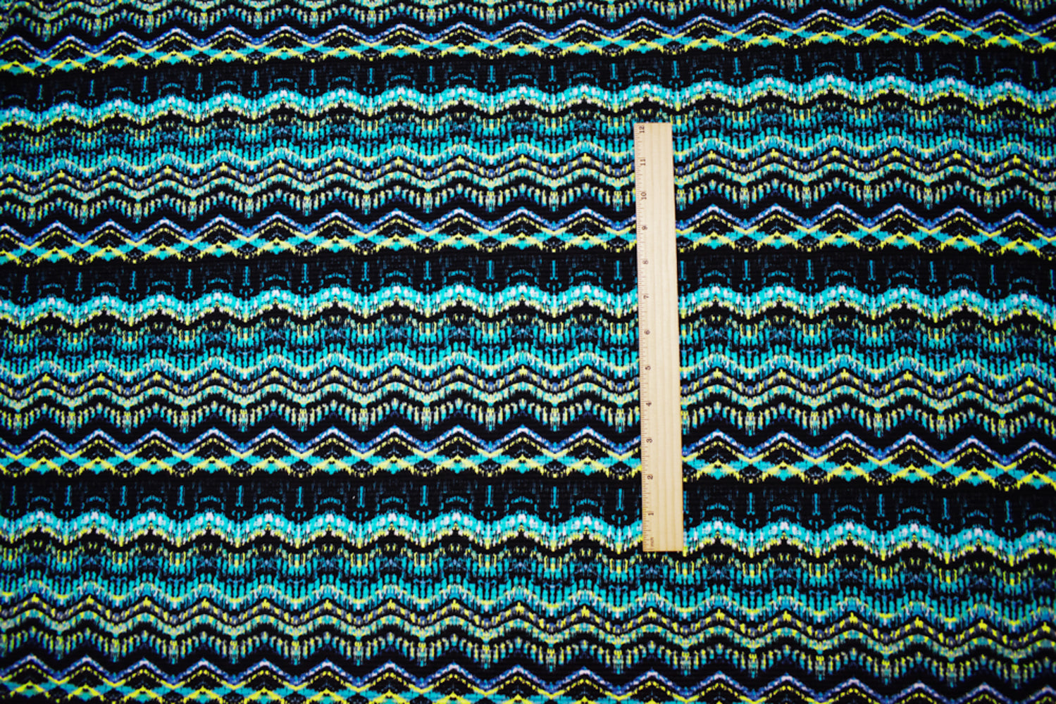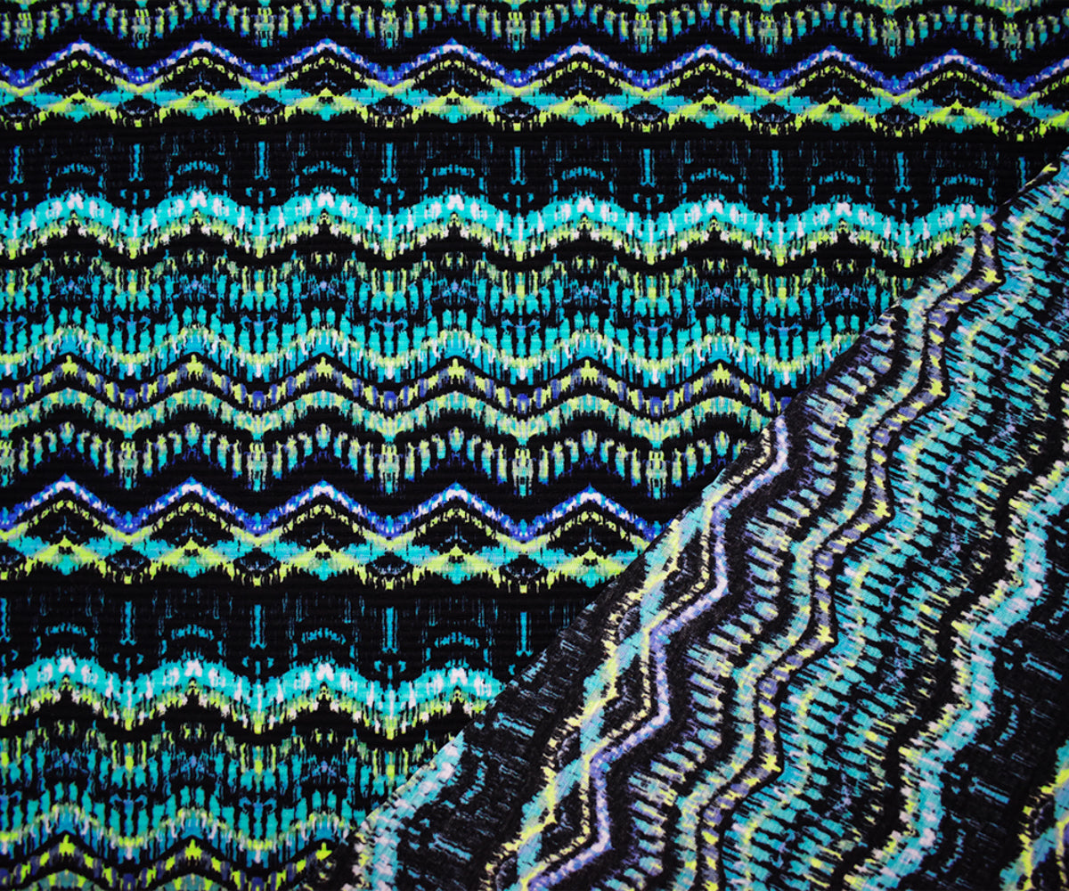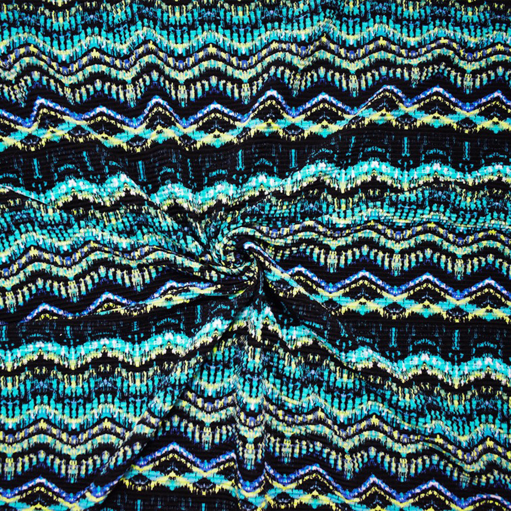 -Black-Multi Poly Stretch Spandex Abstract Chevron Print Pleated Jersey Knit Fabric
