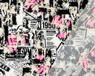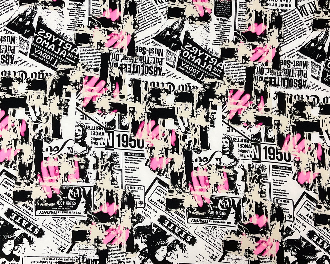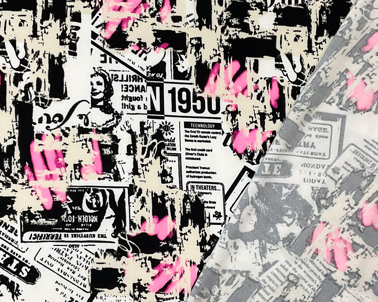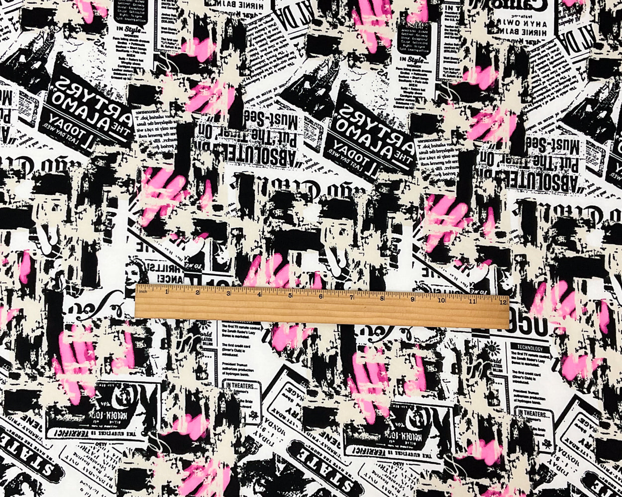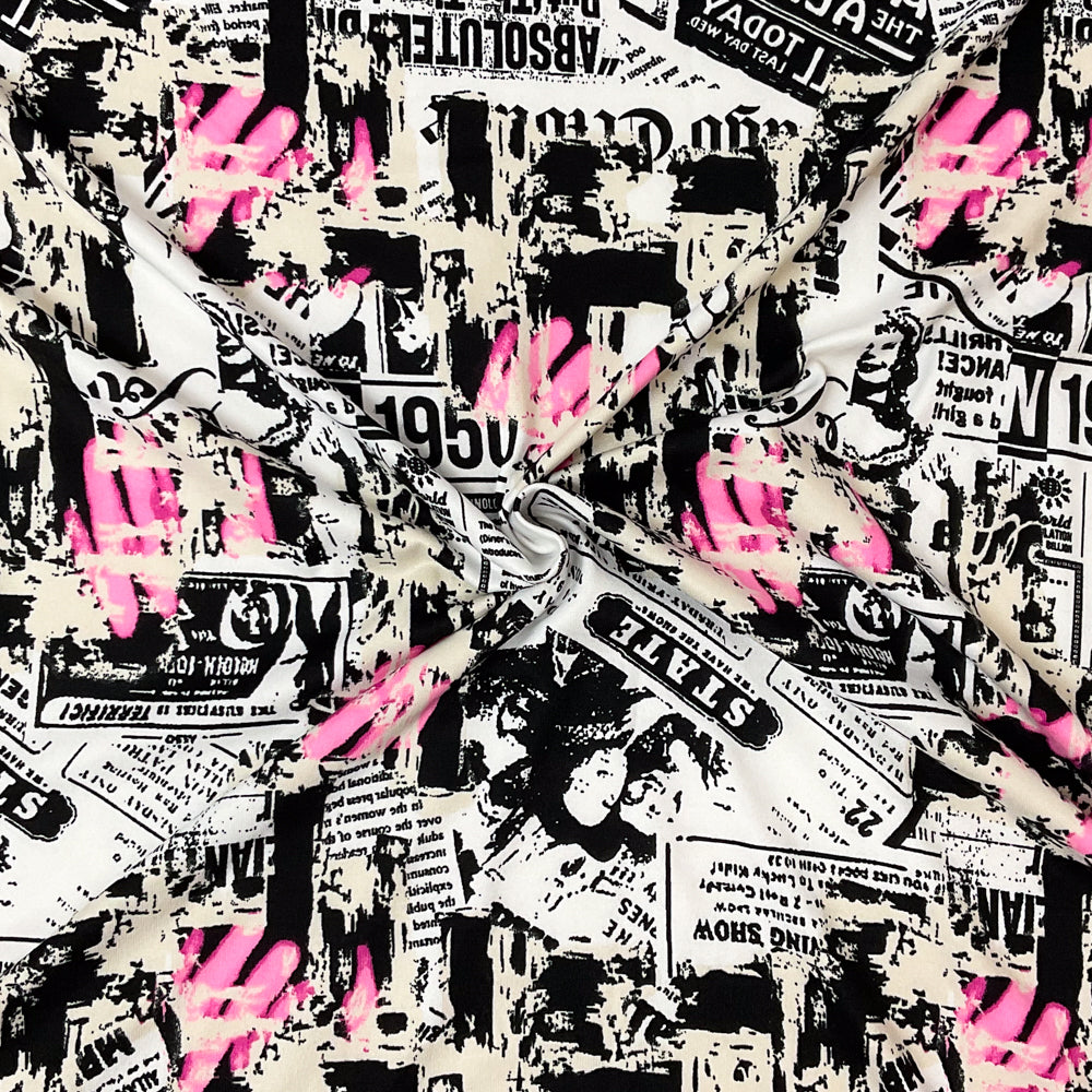 Black-Multi Poly Stretch Spandex News Print DB Jersey Knit Fabric