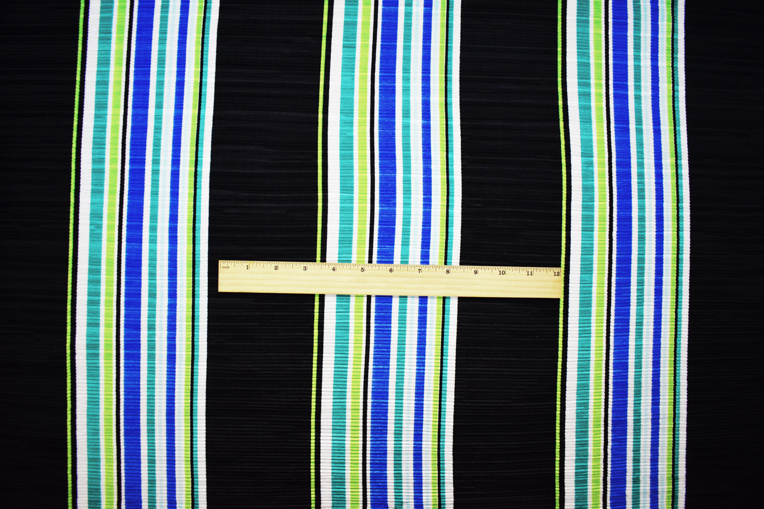 Black-Multi Poly Stretch Spandex Stripe Print Pleated Interlock Knit Fabric