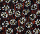 -100% Polyester challis woven fabric printed with an abstract tie dye inspired pattern with eye-like motifs and abstract stripes
