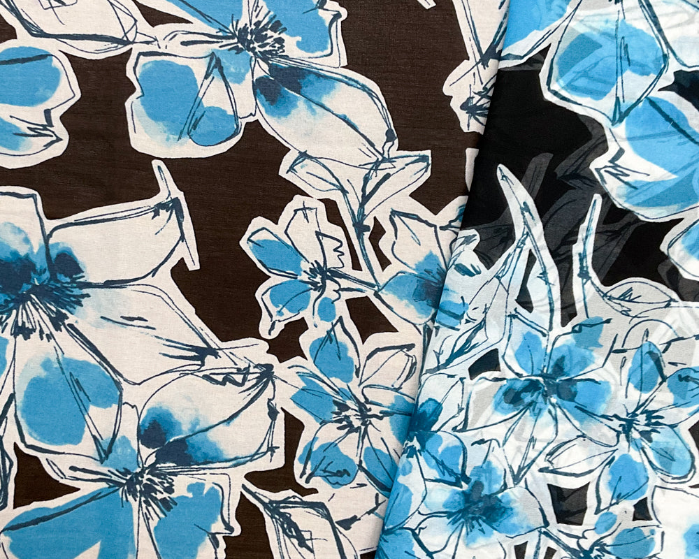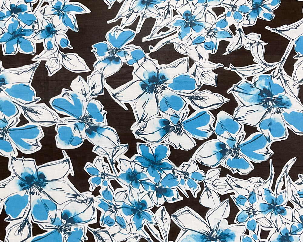 Black-White-Blue Poly Floral Printed Chiffon Woven Fabric