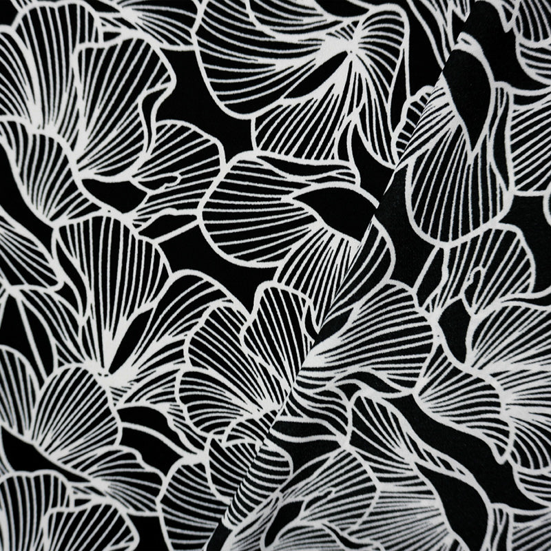 Black-White Poly Floral Printed Georgette Woven Fabric
