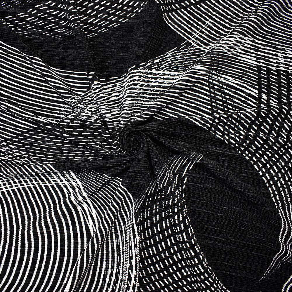 Black-White Poly Stretch Spandex Abstract Print Pleat Interlock Knit Fabric