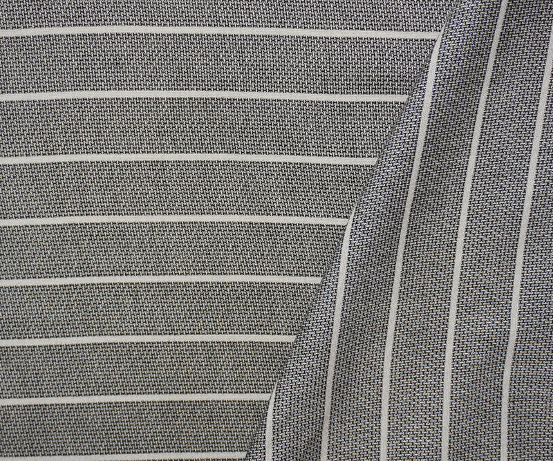 -This rayon fabric features a horizontal stripe pattern woven with a dobby texture for a subtle, all-over pattern. The fabric offers a crisp hand and excellent breathability for structured yet comfortable shirting.