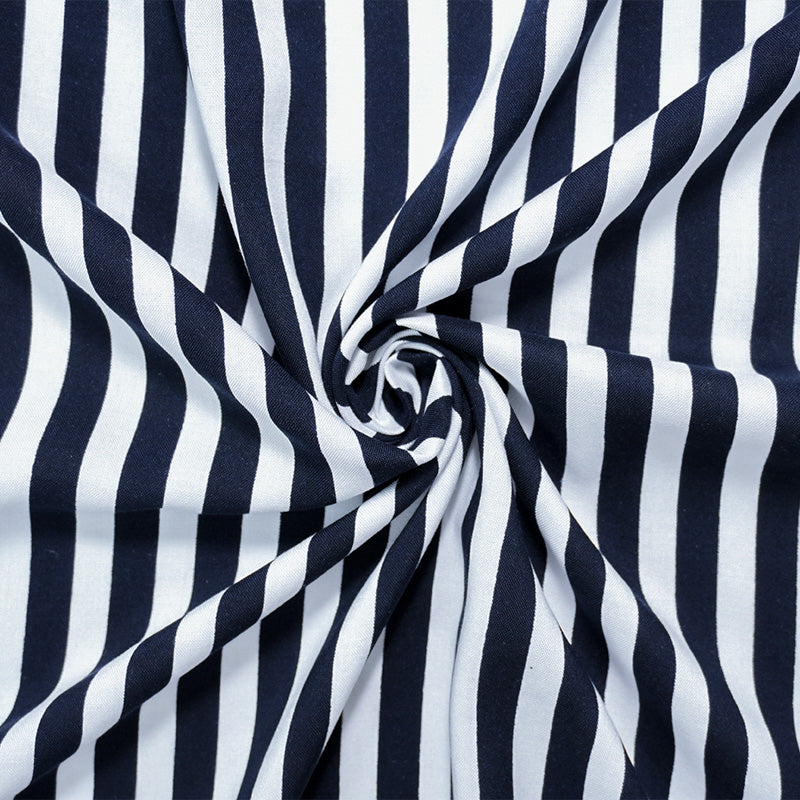 -This 100% rayon fabric is woven in a lightweight challis construction printed with a vertical stripe pattern. It offers a fluid drape and soft hand, ideal for flowing garments like scarves and blouses.