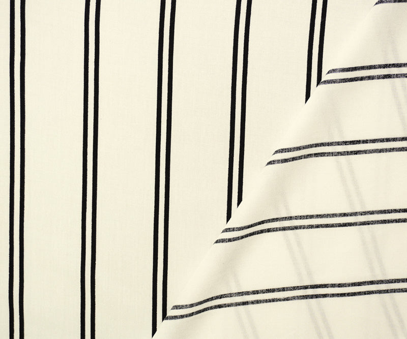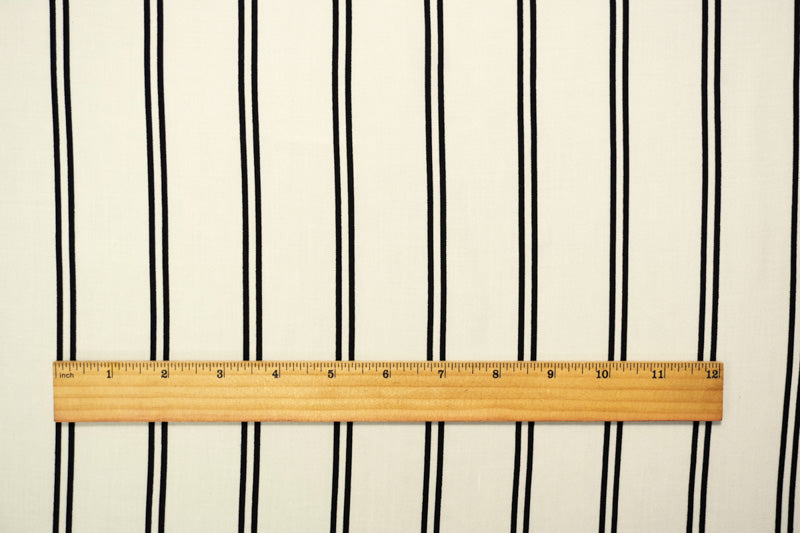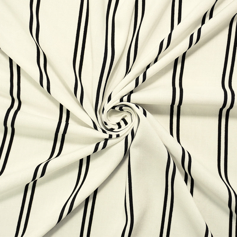 Black-White Rayon Stripe Printed Challis Woven Fabric