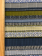Blue and Gold Multi Stripe Print Rayon Challis Fabric