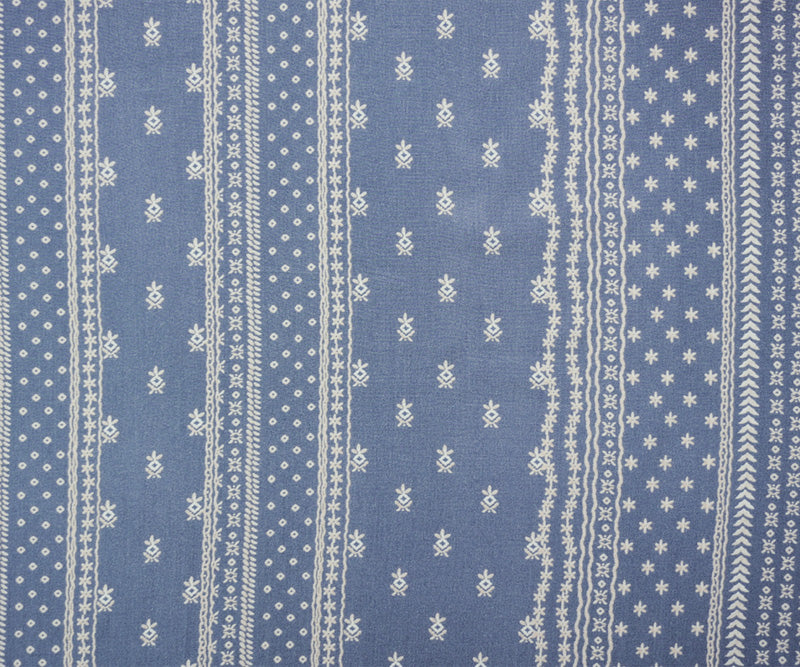 Blue-Beige-White Rayon Nordic Stripe Printed Challis Woven Fabric
