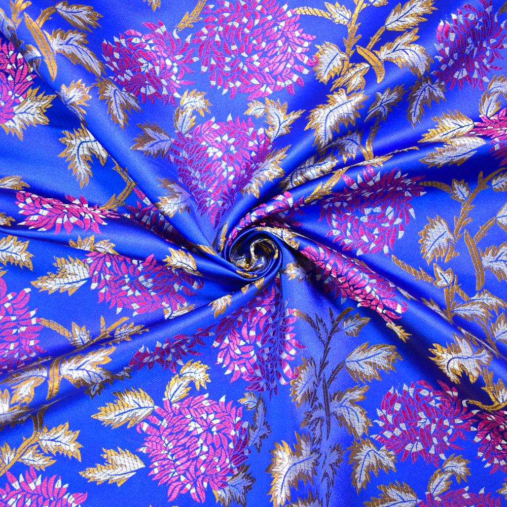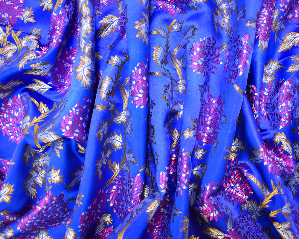 Blue-Fuchsia-Multi Polyester Abstract Floral Chinese Brocade Woven Fabric
