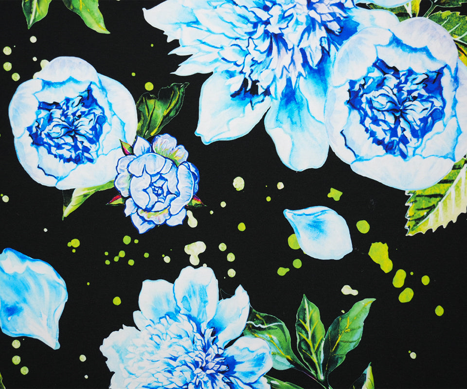 -This poly-spandex ITY knit features an all-over floral print with excellent stretch and recovery. The smooth, drapey fabric is ideal for creating elegant wrap dresses and fluid tops.